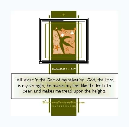 I WILL EXULT IN THE LORD OF MY SALVATION. GOD, THE LORD, IS MY STRENGTH; HE MAKES MY FEET LIKE THE FEET OF A DEER, AND MAKES ME TREAD UPON THE HEIGHTS.