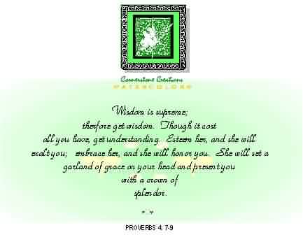 WISDOM IS SUPREME; THEREFORE GET WISDOM. THOUGH IT COST ALL YOU HAVE, GET UNDERSTANDING. ESTEEM HER, AND SHE WILL EXALT YOU; EMBRACE HER, AND SHE WILL HONOR YOU. SHE WILL SET A GARLAND OF GRACE ON YOUR HEAD AND PRESENT YOU WITH A CROWN OF SPLENDOR.