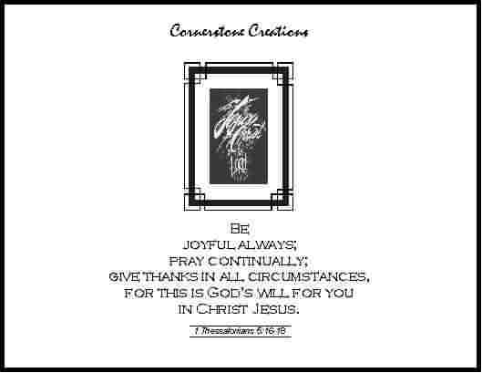BE JOYFUL ALWAYS; PRAY CONTINUALLY; GIVE THANKS IN ALL CIRCUMSTANCES, FOR THIS IS GOD'S WILL FOR YOU IN CHRIST JESUS.